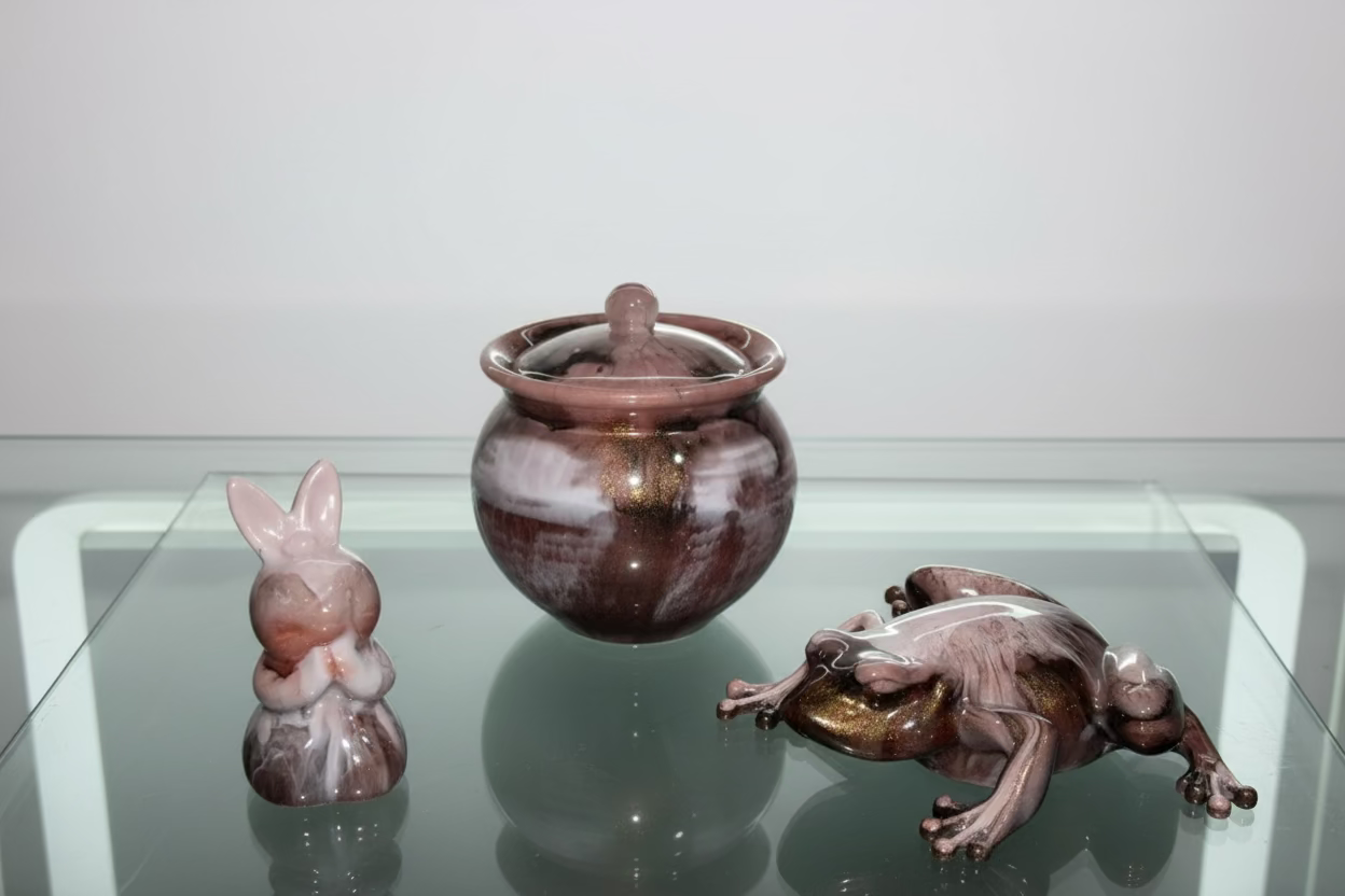Uniquely crafted jars, trays, and figurines embellished with different textures and colors epoxy resin.